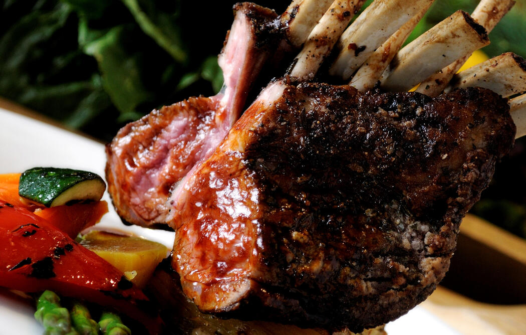 1. Portabella Mushroom Crostini2. Vichyssoise soup3. Lime and Basil Sorbet4. Rack of Lamb served with Garlic Parmesan Broccoflower5. Coffee Tortoni with Kahlua